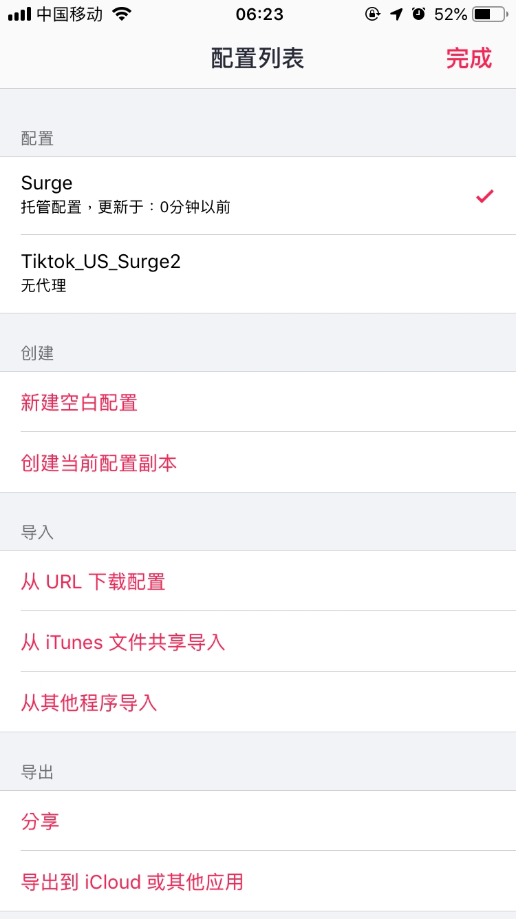 或打开 Surge 2 点击底部导航栏的「配置」进入配置页面。